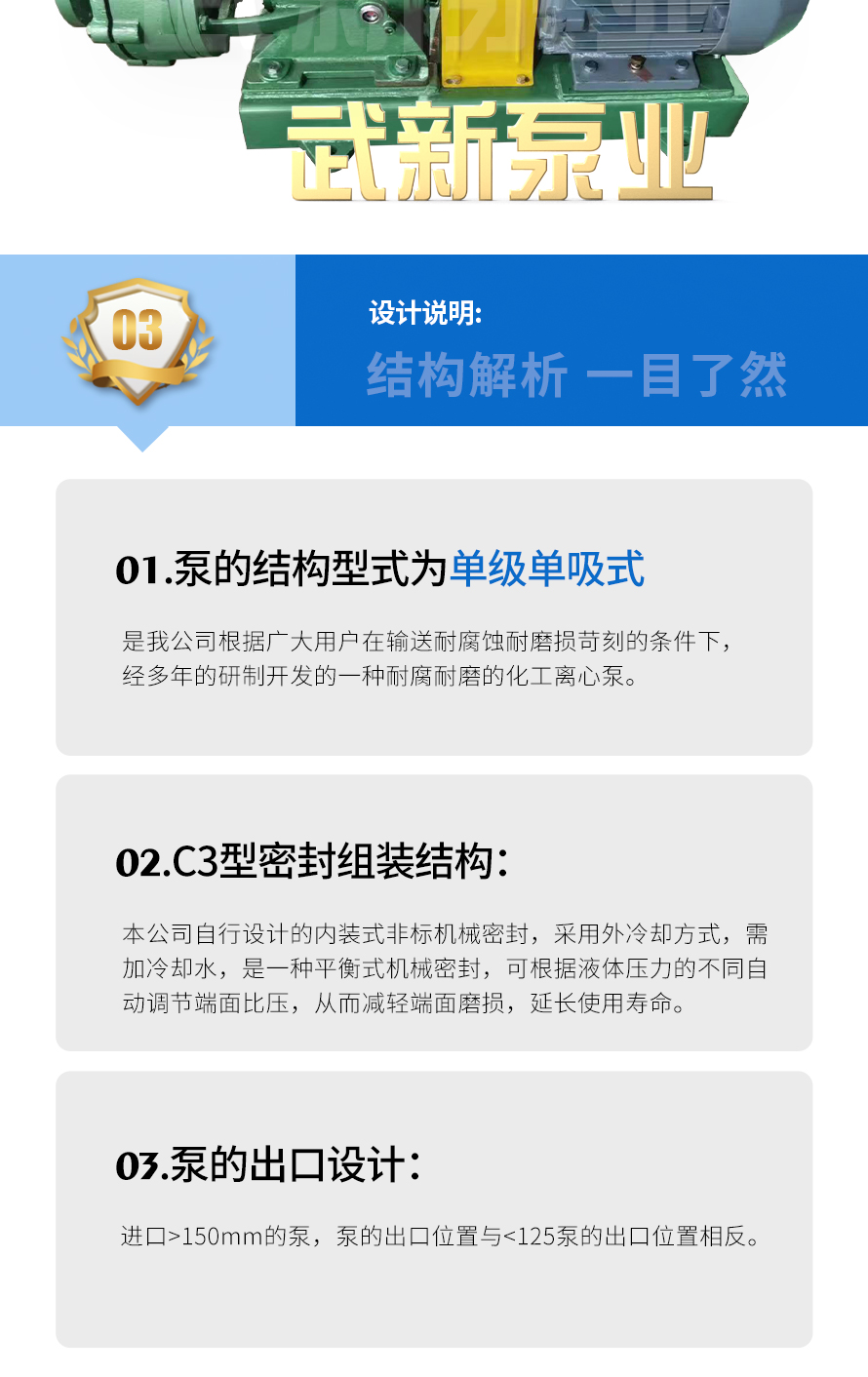 單、雙滑動軸承結(jié)構(gòu)(按大小流量、高低揚(yáng)程、功率大小),部件通用性高,互換性好;