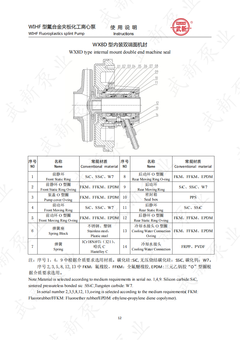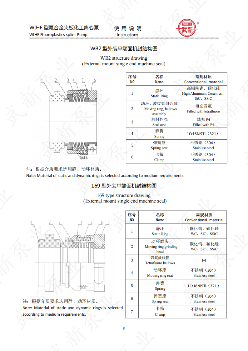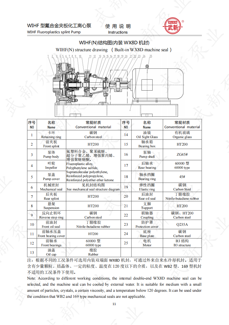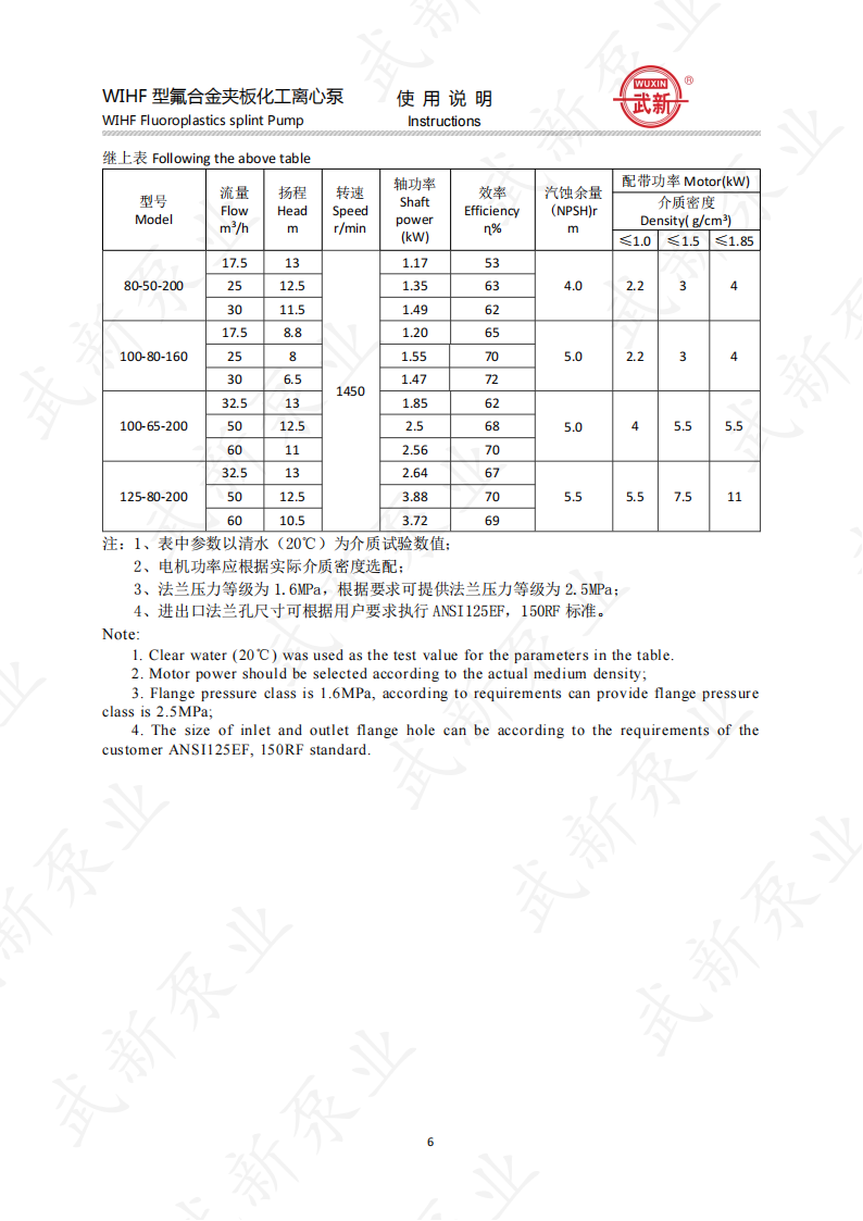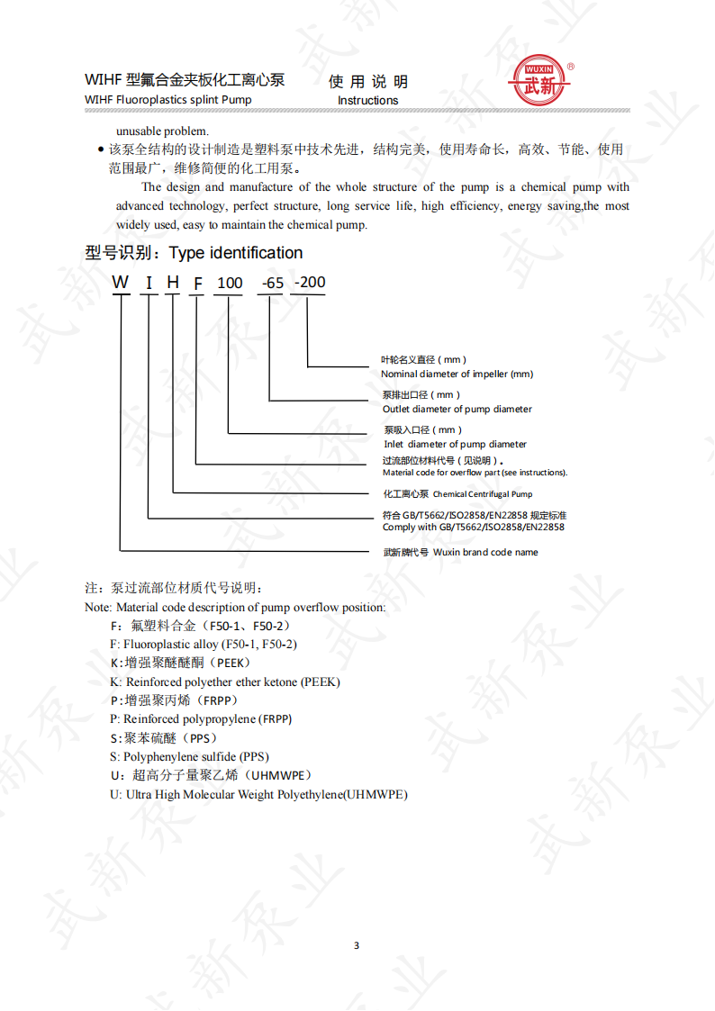 WIHF型系列氟塑料耐腐耐磨夾板加強(qiáng)型化工泵是我公司根據(jù)用戶的需求,吸收國外泵先進(jìn)技術(shù)。經(jīng)過多年來研制開發(fā)的一種新型耐腐耐磨耐顆粒結(jié)晶的化工用泵。泵的介質(zhì)過流部位全部采用耐腐、耐磨塑料制造,泵體外圍采用金屬夾板加固,機(jī)封為自行設(shè)計。